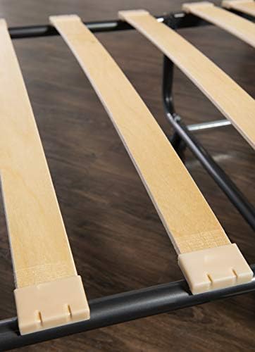 Sturdy metal tube frame with durable wood slat supports