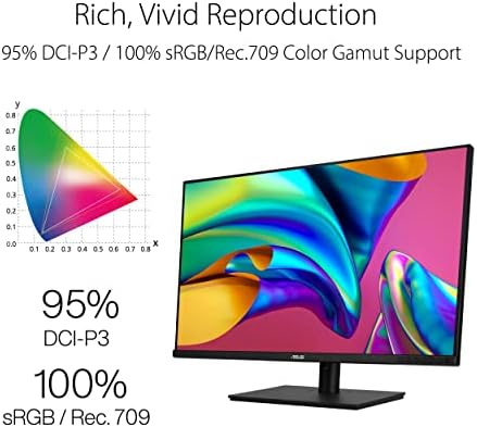 The ASUS ProArt Display PA328CGV is a 32-inch monitor designed to satisfy the needs of creative professionals, from photo and video editing to graphic design. Pre-calibrated at the factory and Calman Verified to deliver superb color accuracy, it provides industry-standard 95% DCI-P3 and 100% sRGB/Rec. 709 color space coverage.